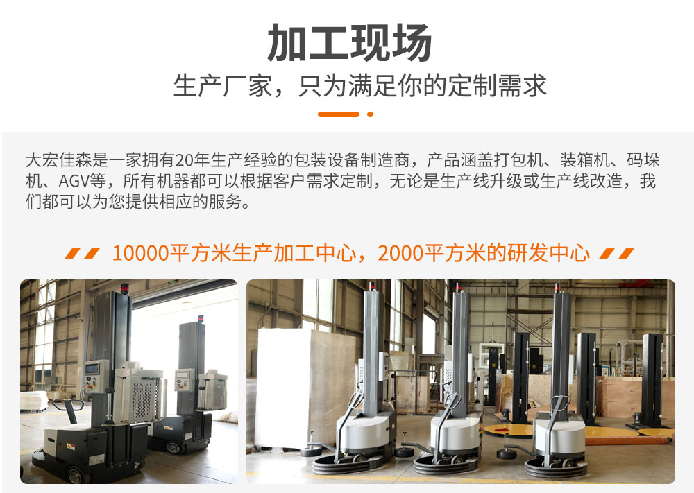 自走式纏繞機SCR-600不受貨物尺寸及重量限制,滿足各種不同形狀包裝物,自動化程度高,